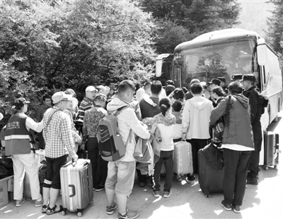 8月9日,在九寨天堂洲际大饭店,救援人员组织游客乘坐车辆撤离。 8日晚21时19分,7.0级地震突袭四川九寨沟。从震区传出消息,天堂洲际大饭店内建筑物坍塌倾斜,饭店及周边1500多名游客滞留,情况不明…… 仅仅16个多小时后,9日14时许,最后一辆车驶离天堂洲际大饭店,滞留游客全部安全转移。