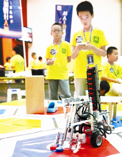 当日,2017年青少年AI人工智能设计大赛在江苏苏州开赛,来自全国各地的100多名选手分别参加自动仓储、无人驾驶汽车、智能家居等项目的角逐。