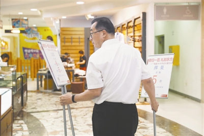图为8月13日,工作人员收起促销广告牌,为闭店做准备。