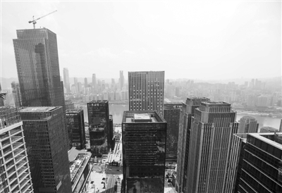 “水空调”让重庆江北嘴CBD商业中心的高楼顶层不见了巨大冷却塔和锅炉(8月14日摄)。