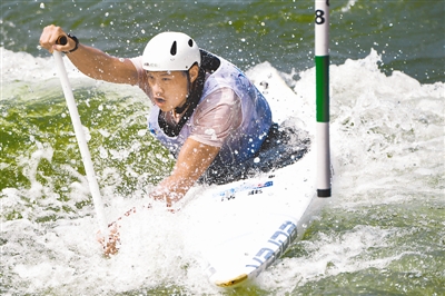 当日,第十三届全运会皮划艇激流回旋比赛男子单人划艇预赛在河南宜阳举行。