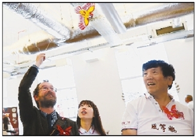 8月17日,在英国伦敦举行的“中国·时代记忆非遗英国行”大型推介活动上,来宾在现场体验放风筝。“中国·时代记忆非遗英国行”大型推介活动17日在伦敦举行,中企带来的一批“非遗”工艺创新产品引起广泛关注。 新华社记者 韩岩 摄