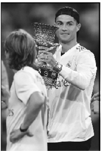 8月16日,皇家马德里队球员克·罗纳尔多手持奖杯庆祝夺冠。