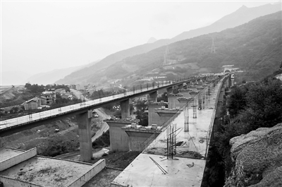 成兰铁路茂县境内一处连接隧道的高架桥。