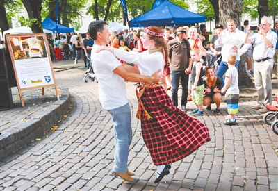 8月19日,在拉脱维亚首都里加,身着拉脱维亚民族服装的少女表演民族舞,庆祝里加建城816周年。