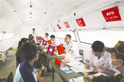 日前,由陆军军医大学和桂林联保中心昆明总医院组成的医疗队赴老挝开展“和平列车-2017”医疗服务活动。在此期间,陆军军医大学60名医务人员组成医疗一队在琅南塔省开设帐篷医院,共诊疗军民3461人次。
