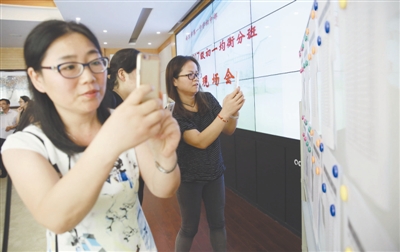 8月22日,在南京市第一中学2017级初一均衡分班现场会结束后,学生家长来到公示板前观看、拍摄结果。