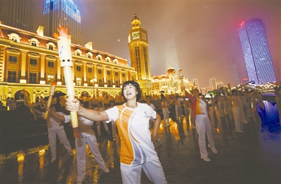 当日,千余名天津市民手持“火炬”在海河解放桥段参加了第十三届全运会开幕“点亮海河”活动。