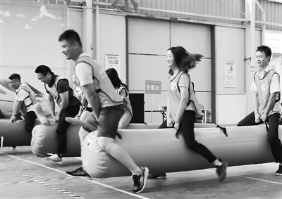 据介绍,该公司数千名员工远离家乡,常年奋战在各建设工地,工作繁重而艰辛。企业倡导“我运动,我快乐”的健康生活理念,经常开展职工喜闻乐见的文体活动,丰富职工业余文化生活,增强职工队伍凝聚力。图为选手们正在进行“毛毛虫”竞速比赛。倪树斌 摄