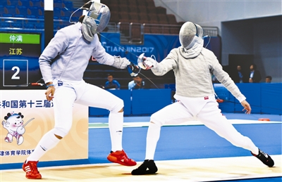 8月28日,全运会开幕后首个比赛日,击剑项目比赛在天津体育学院体育馆进行。江苏老将、北京奥运会冠军仲满,在上届辽宁全运会夺冠之后宣布退役,为了本届全运会去年决定再次复出。34岁的仲满在比赛中保持了良好的竞技状态,最终夺冠。