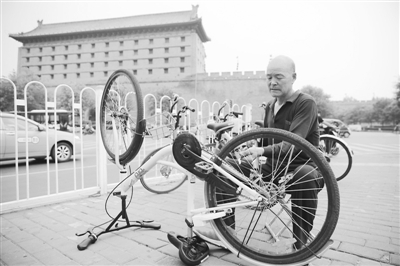 背着10多公斤重的工具包,每天起早贪黑在西安街头义务维修共享单车,66岁的王建民觉得自己过得很充实。