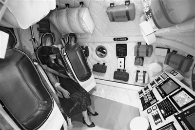 近日,以“两弹一星+海陆空天电+军民融合+城市地标”为主题内容的大型“国防教育、科普教育和爱国主义教育”互动体验馆——军界·秦皇岛军事科学教育VR基地,在河北省秦皇岛经济技术开发区建成开始试运营。据介绍,该基地总展区面积一万多平方米,是目前河北省第一个以军事科技体验为主题的多展项集中控制的高科技教育基地。图为游客在基地的宇宙飞船模型内体验“太空飞行”。