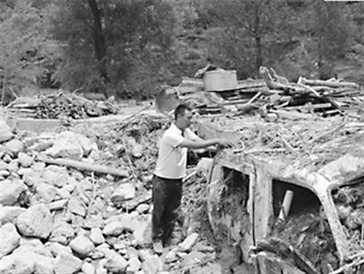 暴雨泥石流灾害发生之时,李加朋忙着背人、救人,转移村民。他的家连同家中的钱款和物品尽遭冲毁淹没。