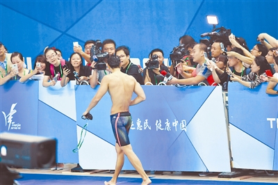 在今天上午男子100米自由泳预赛中,代表河南队出战的宁泽涛从运动员出口走到第5赛道的过程中,看台上粉丝们积压了3天的热情如火山喷涌而出。“宁泽涛加油”响彻天津奥林匹克中心游泳跳水馆。最终,宁泽涛以49秒44的成绩跻身半决赛。晚上,宁泽涛又以48秒11小组第一的成绩成功闯进决赛。