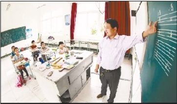 9月6日,江苏省盱眙县天泉湖镇范墩教学点的教师郑先龙在讲课。在盱眙县与安徽来安县交界处,有一所“微小学”——江苏省淮安市盱眙县天泉湖镇范墩教学点。4名乡村教师延续着这里的教育“血脉”,其中的3名教师在此任教已经超过了30年,另一人为21年,他们的平均年龄为53岁。目前,该教学点有9名学生,4名教师分别负责三个年级孩子们的全部课程。 新华社发(周海军 摄)