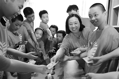 福州车辆段工会精准摸排职工子女入学升学情况,将金秋助学和励志、开展爱国主义教育等活动有机结合。图为8月30日,该段在严复书院开展的“金秋助学读书会”上,段工会负责人在为困难职工子女发放助学金和读书卡。