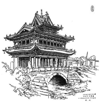 “也许我的写生技法不够专业,建筑结构的表现也不够严谨,但这是我对古建筑热爱情怀的表达和对古建筑现状的记录,是我人生坚实的足迹和个性的展现”。