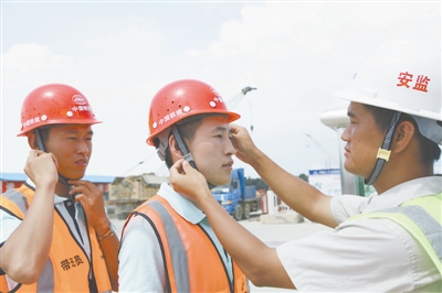 “进入工地必须要系下颚带,危急时刻这根小绳就是‘救命绳’……”近日,中铁二十五局深圳国际会展中心配套市政项目安质部部长刘嘉金为4名新入职的学员在工地安全警示镜前上了第一堂课。除了为他们介绍工地安全防护的一些小常识外,最重要的是要让他们心中深植“安全大于天”的工作理念。据了解,该项目自进场伊始,便深耕安全责任田,从入口闸机到围挡防护的外围防护设备,到每天的班前安全教育课、民工安全教育课、现场安监巡查等既定制度,在项目部树立了从表及里的全方位大安全施工理念。