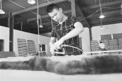 9月11日,湖北省孝感市,云梦皮草工业园区企业正加紧生产,一件件貂皮大衣通过“丝路快车”销往俄罗斯等国家。今年以来,云梦皮草产业园企业生产的近3万件皮草通过当地20多个销售网点销售一空,实现销售收入5400万美元,实现税收900余万元。