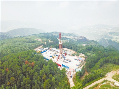 这是正在进行钻井作业的重庆涪陵焦页90号页岩气平台(9月7日摄)。