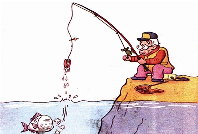 退休的老者在岸边垂钓,没想到吞食上钩的老鱼竟抛掉假牙逃生而去。不是“冤家”不聚首,彼此之感必定是:“彼此,彼此”。
