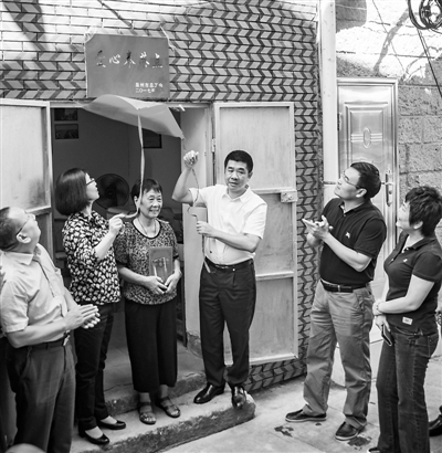 9月15日,福建省总工会副主席张彩珍(左二)与泉州市的工会负责人来到位于泉州西街旧馆驿巷口的免费奉茶点,看望73岁的黄惠兰老人,向她颁发“福建最美劳动者”证书,并为“爱心奉茶点”揭牌。