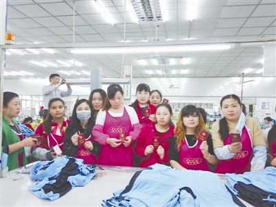巢湖市维尔服饰某车间入会农民工领取会员证