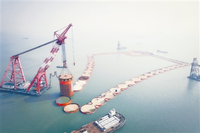 9月18日,最后一个钢圆筒到位后,深中通道西人工岛已初现“海上风筝”之形。