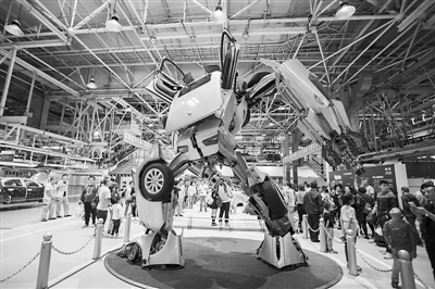 9月16日,吉林长春,员工家属参观一汽-大众长春基地轿车生产线。当日,一汽-大众第八届员工家属开放日活动启动。大约10万名员工及家属在9月16日和17日两天开放日期间走进厂区参观。万昌 摄/东方IC