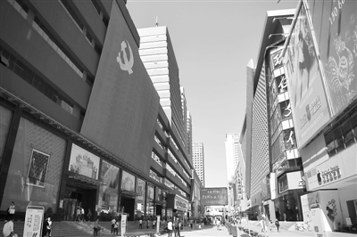 9月13日,在沈阳市,太原街出现巨幅的党旗,成为街道的一道独特的风景。