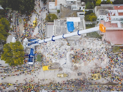 9月20日的航拍照片显示,救援人员在墨西哥首都墨西哥城的一处地震废墟中寻找幸存者。
