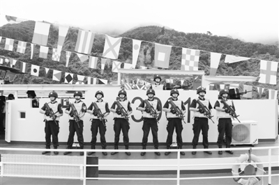 9月19日,在关累港,第62次湄公河联合巡逻执法编队中方执法队员站在甲板上等待起航。