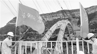 9月22日,蒙华铁路龙门黄河大桥主拱合龙。蒙华铁路是世界上一次建成最长的重载铁路运煤专线、国家“北煤南运”新战略通道。该大桥位于黄河天险禹门口,中铁一局厦门公司自开工以来,实现了“没让一块石头掉入黄河,没让龙虎公路中断一天”。本报记者 毛浓曦 摄