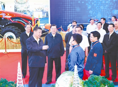 9月25日,党和国家领导人习近平、李克强、张德江、俞正声、刘云山、王岐山、张高丽等在北京展览馆参观“砥砺奋进的五年”大型成就展。 新华社记者 谢环驰 摄
