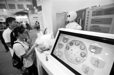 近日,中国首届无人店及便利店展会亮相上海世博展览馆,展品涉及品牌无人店、便利店企业、自助售货系统、相关设备和技术解决方案、产品供应商。智能奶茶店的店员是一名机器人,顾客既可以在电脑屏幕上点单,也可以直接与机器人语音交互点单。