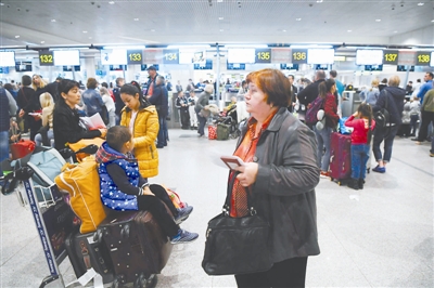 当地时间2017年9月26日,滞留俄罗斯莫斯科多莫杰多沃机场的游客。
