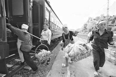 20多年来,沿途老百姓每天挑着箩筐上车,将自己种的农作物拉到贵阳、凯里等城市贩卖,再从城市里买回必要的生产资料和日用品。