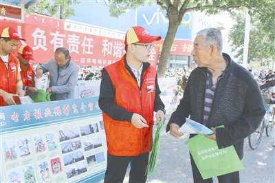活动现场悬挂着宣传标语、摆放着安全用电展板、设立了安全用电宣传咨询台。“电力线、电话线、广播线、电视线,强弱电、要分开、勿相碰、易窜电。”“倒了杆、断了线、要注意、别靠前,落地线、切勿捡、八米外、才安全。”志愿者们头戴小红帽、身穿红马甲,走上街头,有声有色地向过往行人讲解居民安全用电“三字经”。耐心细致地解读《电力法》《电力设施保护条例》等法律法规,以及在电力线路附近和通道内取土、植树、建房、垂钓、违章施工、破坏电力设施等行为的危害性,并解答了群众提出的日常生活中安全用电的问题与疑惑,现场发放了3000余个“保护电力设施 人人有责”的主题手提袋,6000余份安全用电知识传单,现场解答群众咨询400余人次,进一步提升了百姓的电力设施保护意识,提高了安全用电的普及与推广力度。活动现场人头攒动,气氛热烈,前来咨询的群众纷纷表示,希望以后能多开展这样的宣传活动。此次活动,为电力设施保护、安全用电宣传取得了实效,达到宣传群众、发动群众、教育群众的目的,营造了“保护电力设施、人人有责”的舆论环境和社会氛围。