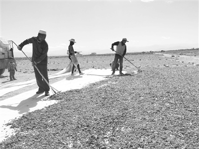 枸杞喜获丰收,当地农民正忙着铺晒枸杞。本报记者 王群 摄
