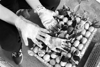 30岁出头的方文秀说,清洗、分拣等工序都要接触到水,久了,皮肤会变皱,甚至会被感染。留守妇女们想到在戴手套前先戴一副无菌手套保护,她们每天可以捡柑橘1000多斤。