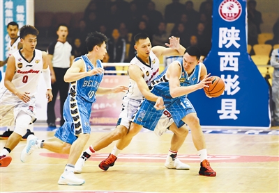 10月11日,北京首钢队球员朱彦西(右一)面对广东东莞银行队球员易建联(右二)的防守控球。当日,在陕西彬县举行的2017-2018赛季中国男子篮球职业联赛(CBA)季前赛中,广东东莞银行队以91比72战胜北京首钢队。 新华社记者 邵瑞 摄