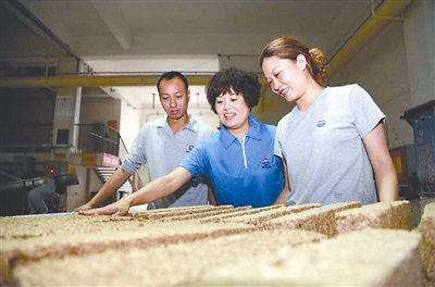 任金素眼勤、手勤、腿勤。她常说自己是苦命,闲不住。不管该她“走早”,该不该她值班,反正她都在。似乎热火朝天的劳动景象,最能引发她内心深处对生活的无限热爱。她一到班组,就没有一分钟停过。看到晾堂哪个角落脏了,就赶紧扫一扫;发酵仓里的稻草用完了,就赶紧去草仓帮忙抱两捆;晾堂曲块晾干了,看到员工来不及收,赶紧帮忙。只要是有利于员工,有利于大曲质量提升、产量提高的事情,她总是全身心投入。最近,对大幅度减轻劳动强度的一、二号生产房改造,她一天要来回跑好几趟。关心工程的进度,关心工程的质量,还要检查施工是否安全,不管在不在她的职责范围,她都管。她最朴素的想法就是,她要靠公司吃饭,所以公司的事,就是她的事。如果大家都不管,公司垮了,大家的饭碗就丢了。
