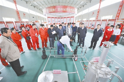 为了把创新工作延伸至管理末梢,强化班组创新基础保障,长庆油田不断完善一线员工素质提升机制,在基层井区建立培训基地,站点设立岗位练兵台,持续在一线开展“技术对抗赛”“岗位结对子”等练兵活动,把培训课堂搬到生产现场,学习活动融入日常工作,形成了符合基层实际的员工教育培训模式,提高了员工素质提升的准确性、灵活性、实用性,有效夯实员工素质提升基础保障。近年来,长庆油田共组织6万余人次参加了各类培训和技能大赛,有230余人获省部级技术状元、技术能手称号,120余人破格晋升为技师、高级技师,拓宽了员工岗位成才渠道,塑造了一支拥有近300多名省部级技术状元(能手)、1300余名工人技师和2.38万名中级工以上员工队伍,推动了知识型、技术型、创新型员工队伍建设,也为一线开展“每口油井日增油0.1吨” “金点子助推大发展,小智慧攻克低渗透”“我为安全谏一言”“能工巧匠大讲堂”等班组创新活动,提供了人才保障。