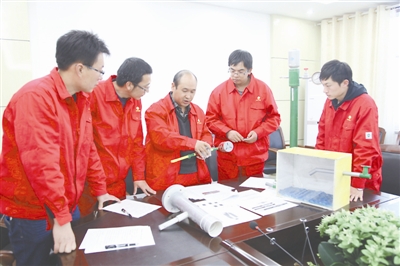 景忠峰与工作室成员进行设备技术改良