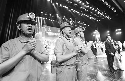 10月16日,安徽淮北矿业集团员工正在表演歌舞。当日,该集团举办“唱响好声音,喜迎十九大”歌手大奖赛,员工们用舞蹈和歌声喜迎党的十九大召开。 黄世鹏 摄/视觉中国
