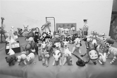 退休女工用毛线勾织出“动物世界”