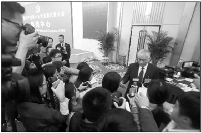10月20日晚,十九大新闻中心举办以“实施创新驱动发展战略”为主题的集体采访。集体采访结束后,王志刚代表被记者围住,继续就科技创新等相关问题进行追问。