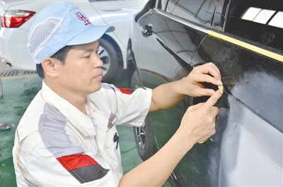 兰家洋上前检查,原来,这辆车是二次维修车辆,维修工作想要达到完美,是有一定难度的,这台车子主要由徒弟操刀修复,检查过后,他发现,的确有不完美的地方,于是,兰家洋为客户再次进行了返工。