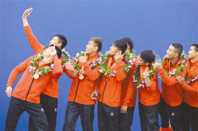 10月22日,中国队选手在颁奖时合影。中国队以1分52秒962的成绩获得500米标准龙舟精英公开组冠军。