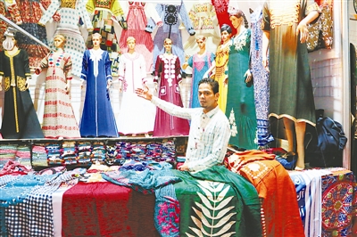 10月21日,在伊拉克首都巴格达,一名参展商在国际贸易博览会上介绍商品。